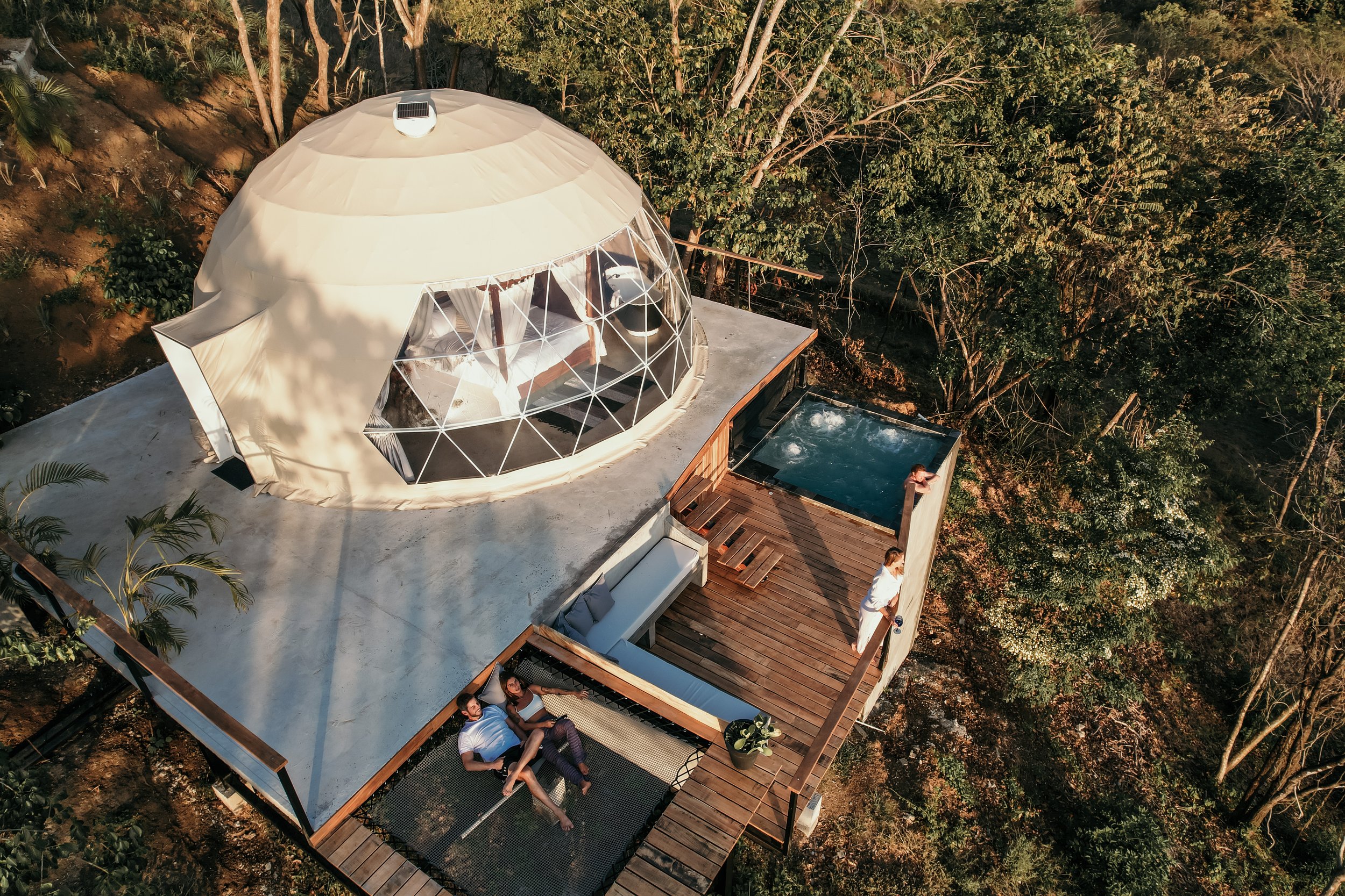 ❋ World Class Comforthuge, private, AIR CONDITIONED domes, with high quality bedding — each with a viewing deck of jungle & SEA , plus A STAR GAZING NET.